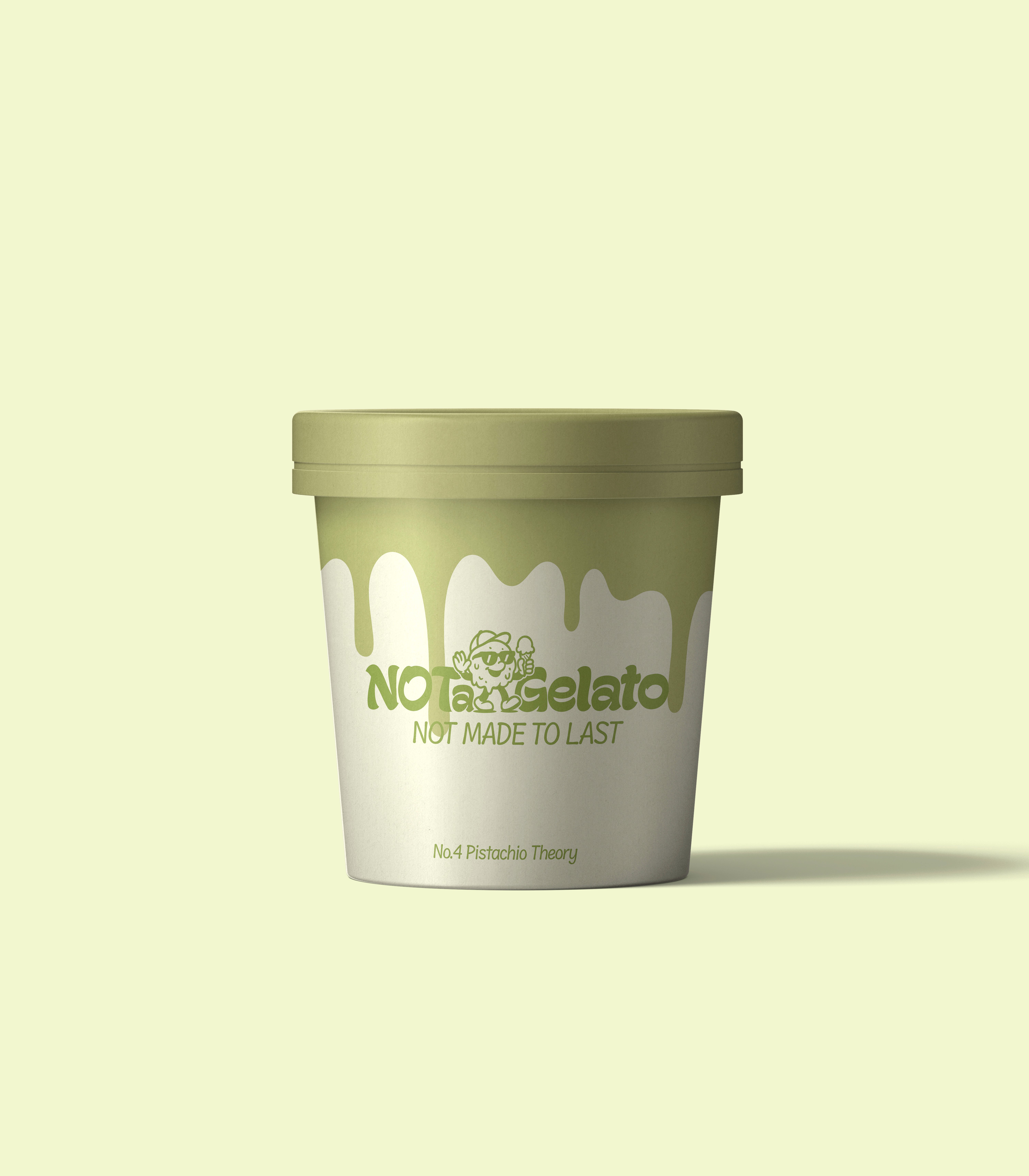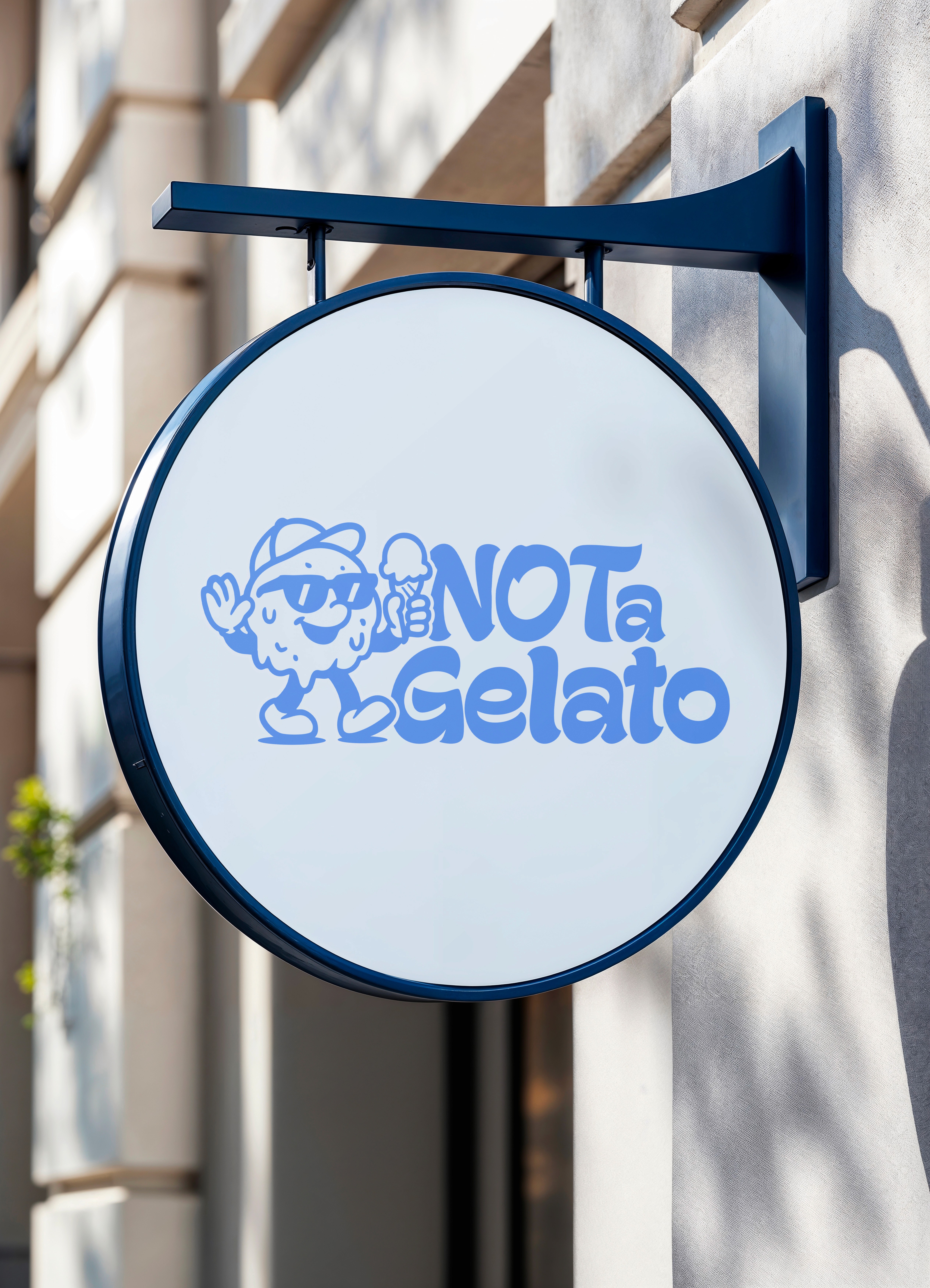 NOT a Gelato is a conceptual ice cream brand that challenges the conventional idea of what a product should be. It’s not just about selling ice cream, it's selling a vibe, a mascot that connects with clients, it’s about questioning how we consume, design, and experience something as ordinary as dessert.
